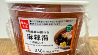 ローソンで買える「麻辣湯(春雨入り)」の実食レビュー。レンチン3分で温かいピリ辛スープが楽しめ、筍やもやしの食感も◎。タンパク質7.5g・食物繊維4gで栄養価も高く、忙しい朝ごはんや軽めの食事におすすめです。